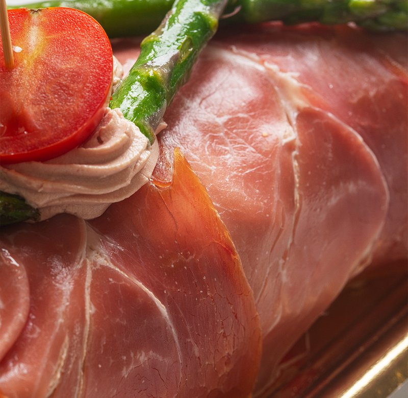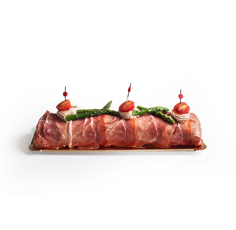 Brazo salado gourmet relleno de jamón ibérico y foie.