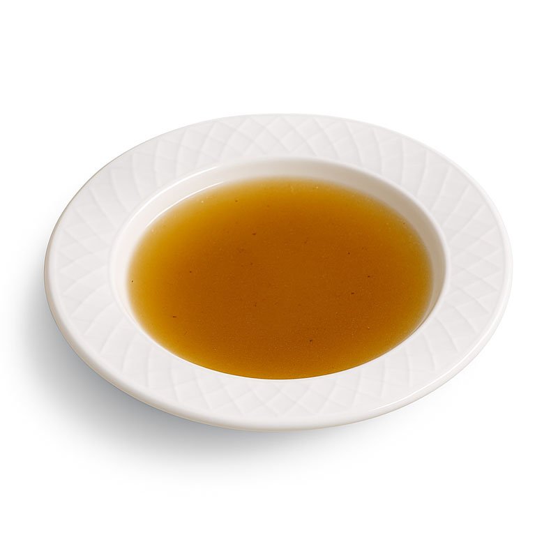 Caldo casero de ternera y pollo con verduras de temporada elaborado en nuestro obrador sin aditivos ni conservantes.