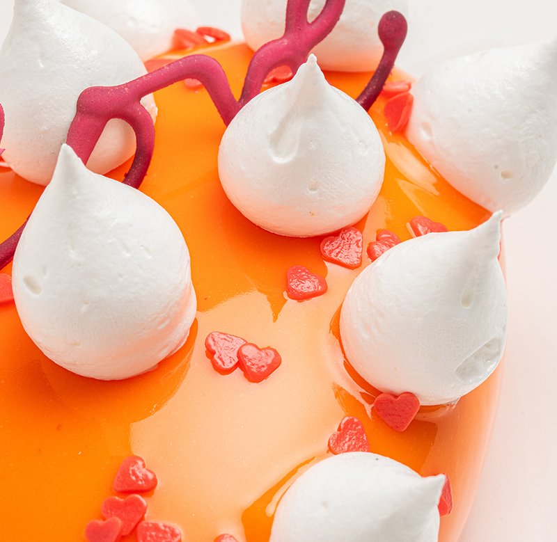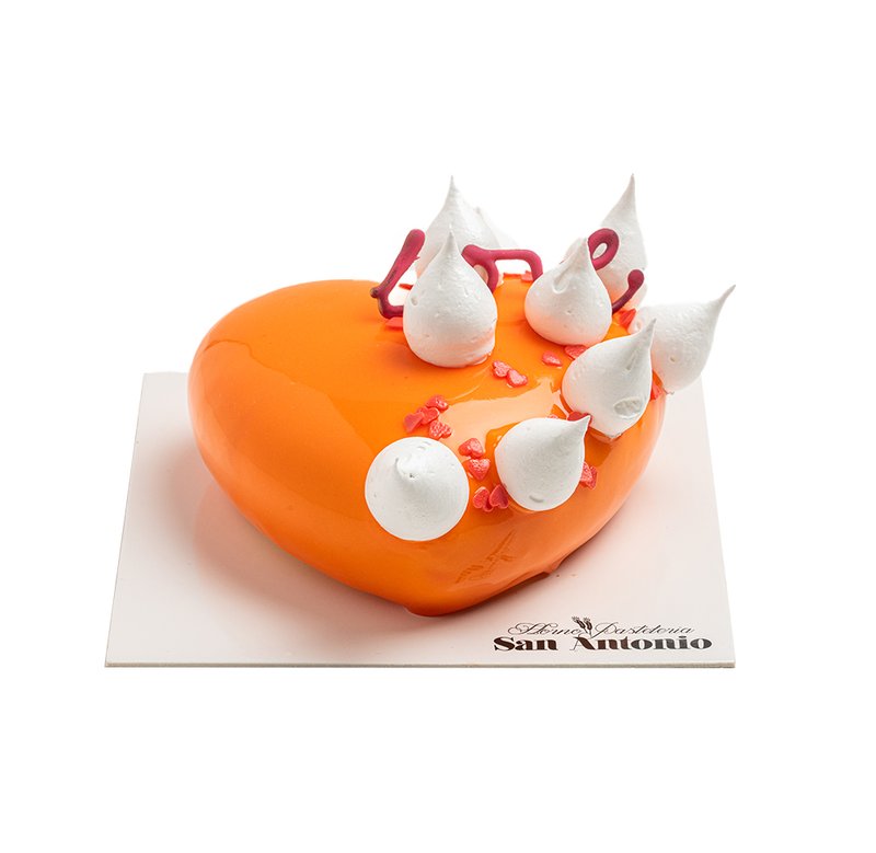 Tarta en forma de corazón tropical de mango y maracuyá para 4/6 personas.