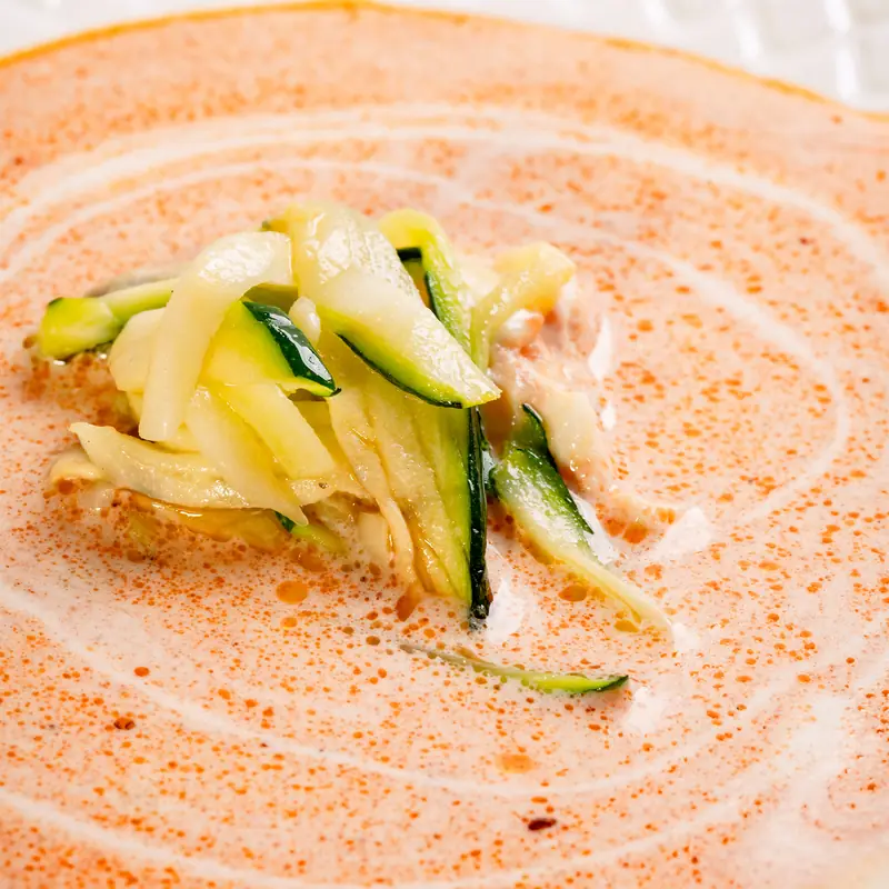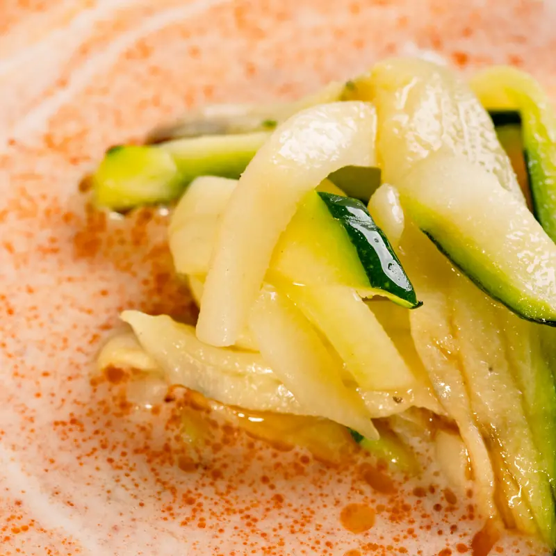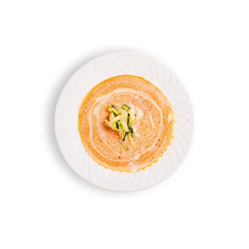 Sopa cremosa casera elaborada con calabaza asada natural y verduras frescas de temporada.