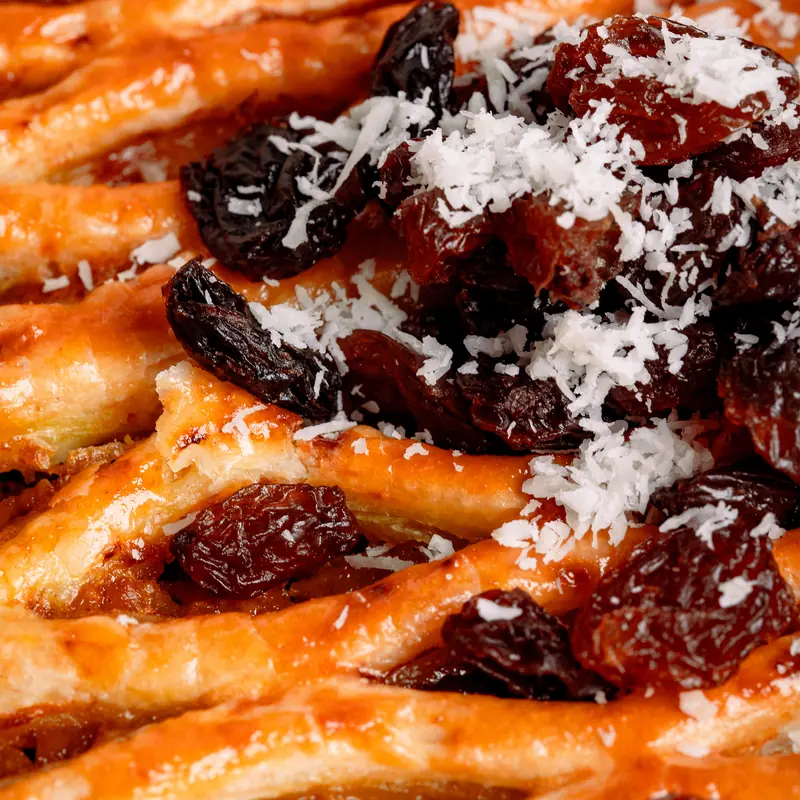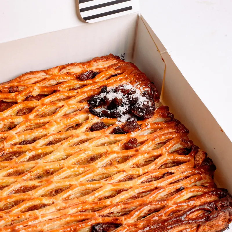 Empanada elaborada con una fina capa de hojaldre elaborada a mano y rellena de pollo al curry.