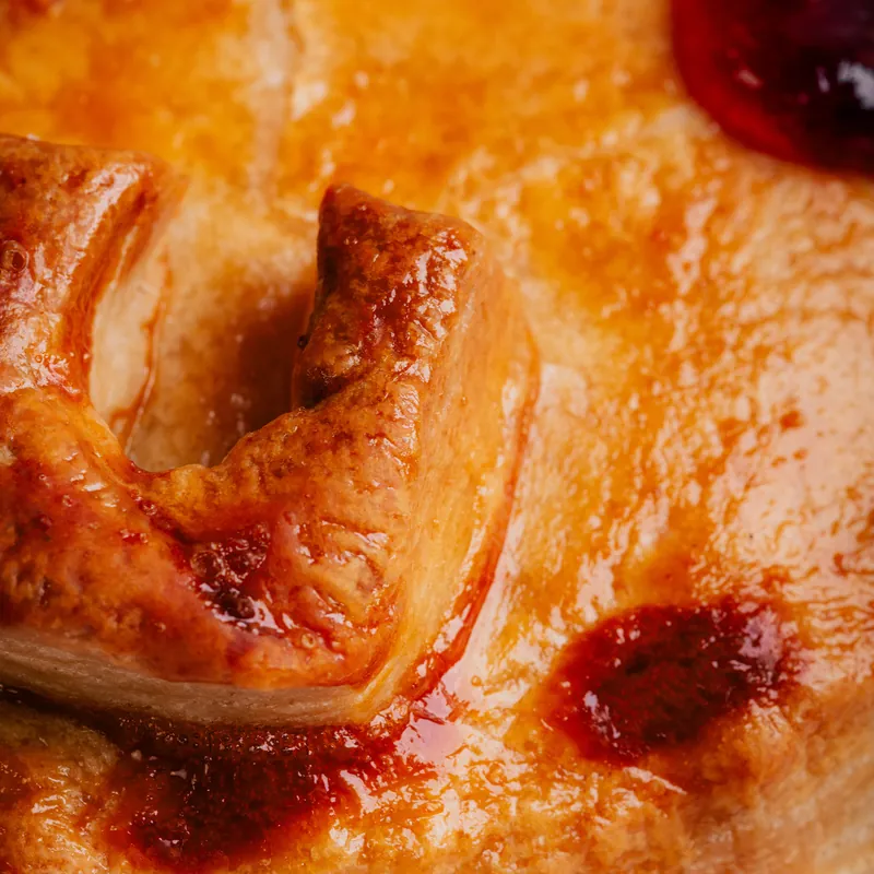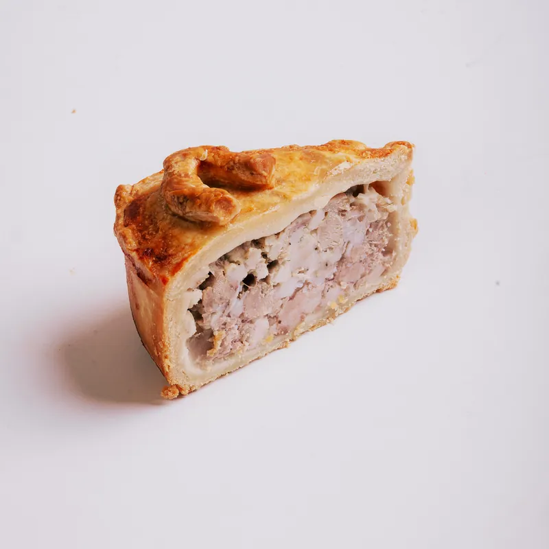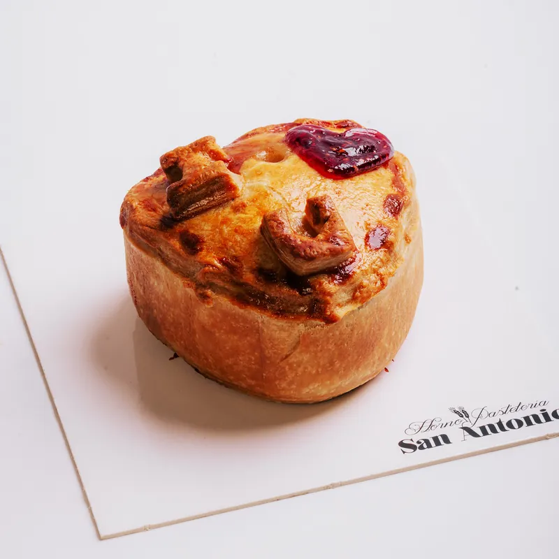 Pastel salado de carne “Pork pie” tradicional elaborado con nuestra receta inglesa secreta relleno de carne de cerdo jugosa y gelatina de caldo de huesos. Se recomienda consumir a temperatura ambiente. Una delicia perfecta para compartir en picnic o almuerzos.