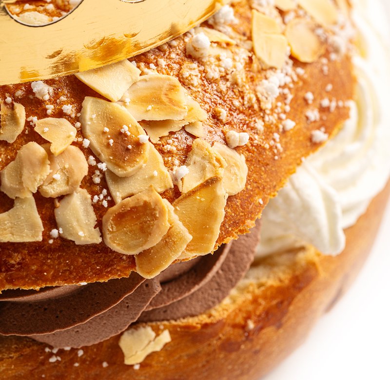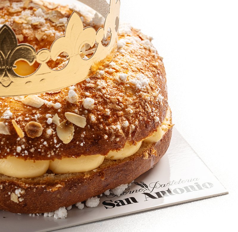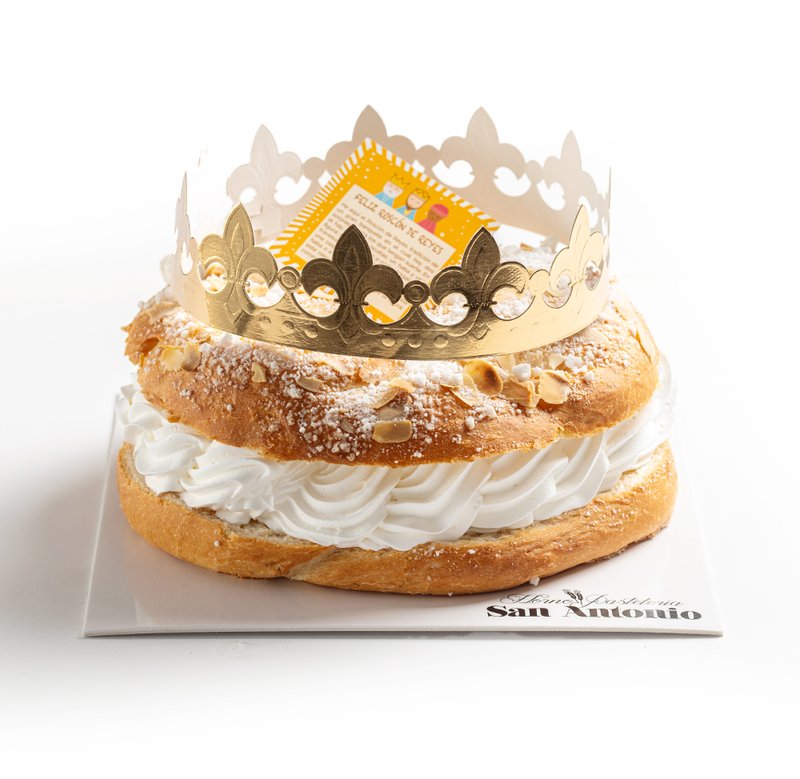 Roscón artesano elaborado a mano de forma tradicional sin aditivos. Esconde en su interior el haba y el rey.